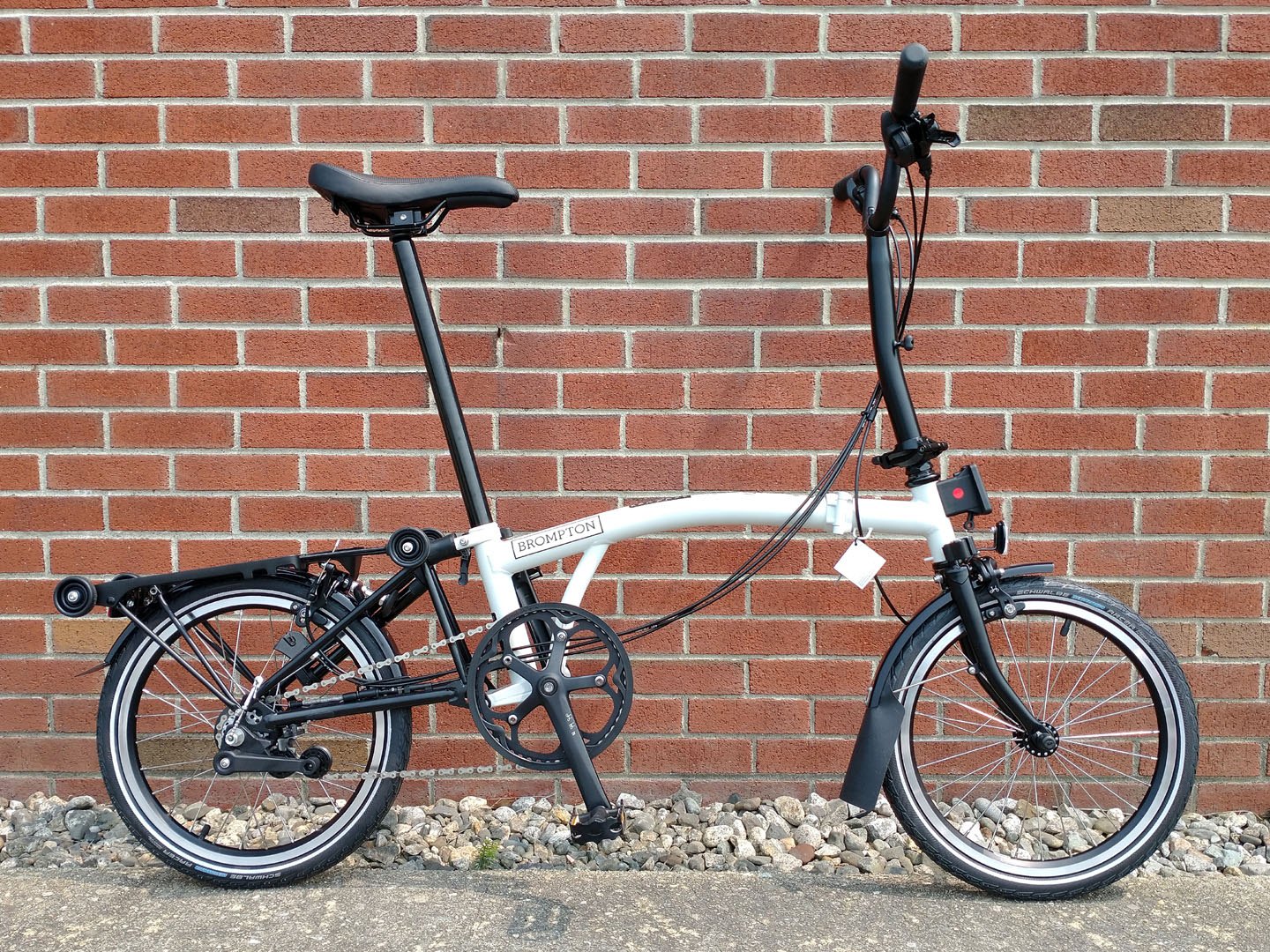 our Electric C Lines if you don't have the space to store an electric G Line or need to carry your bike in your arms for a significant distance on your commute then an e C Line like this one is the way to go. significantly lighter than the e G (about 10 lbs!) we love the versatility of electric C lines. rode to work and got stuck in a snowstorm? no biggie, call an Uber (or the partner taxi) and throw the one of these in the trunk or back seat of even the smallest of cars. live on the 3rd floor of a walk-up? a Brompton is probably one of the few e-bikes on the planet that you won't be cursing every time you look at your stairs. lovely!