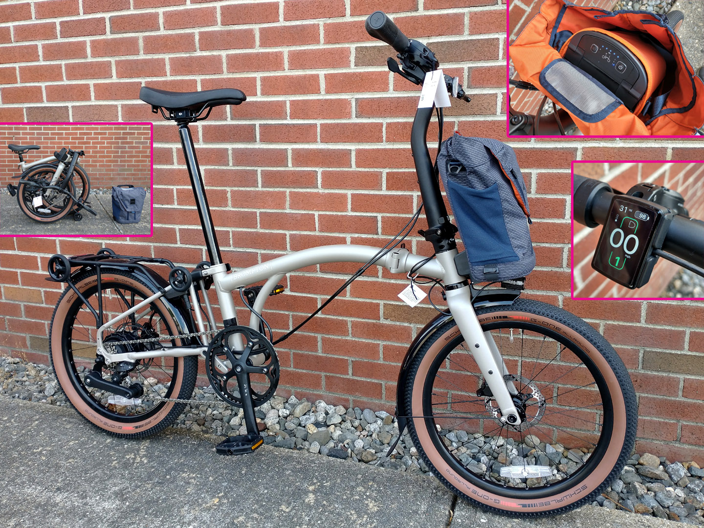 Brompton also makes electric versions of there G, P and C lines which have been designed to ride and fold the same as their non-battery powered siblings - just a tad heavier due to the motors and battery, but oh so much faster and easier to ride. hills be damned!